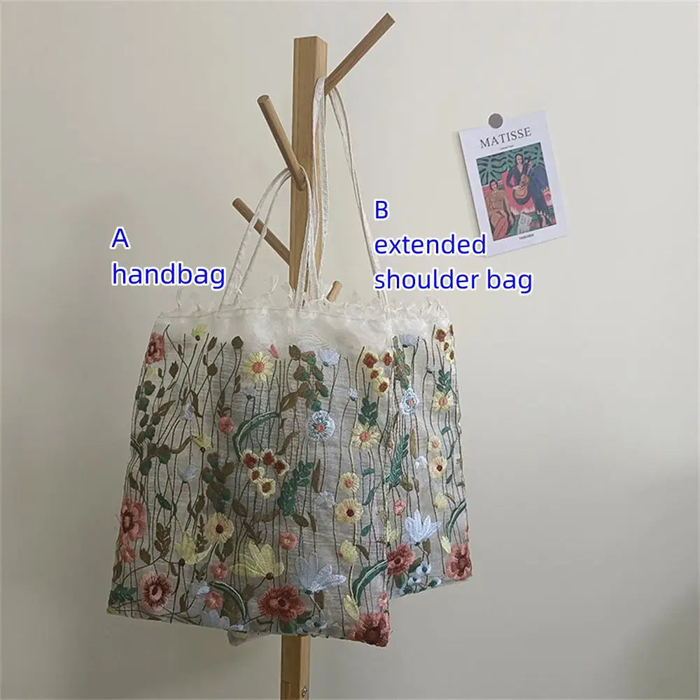 Tote Bag mit bestickter Netzblume – Transparente Sommer-Umhängetasche für Damen