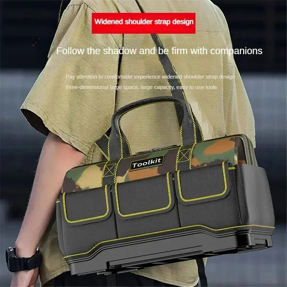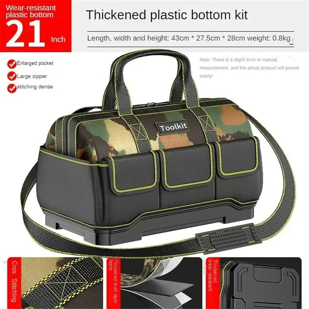 Werkzeugtasche für Elektriker in Camouflage – Wasserdichter, harter Boden, Werkzeug-Organizer mit mehreren Taschen und Schultergurt