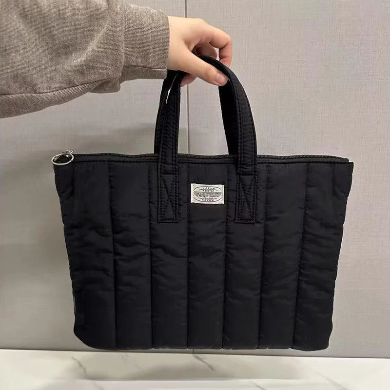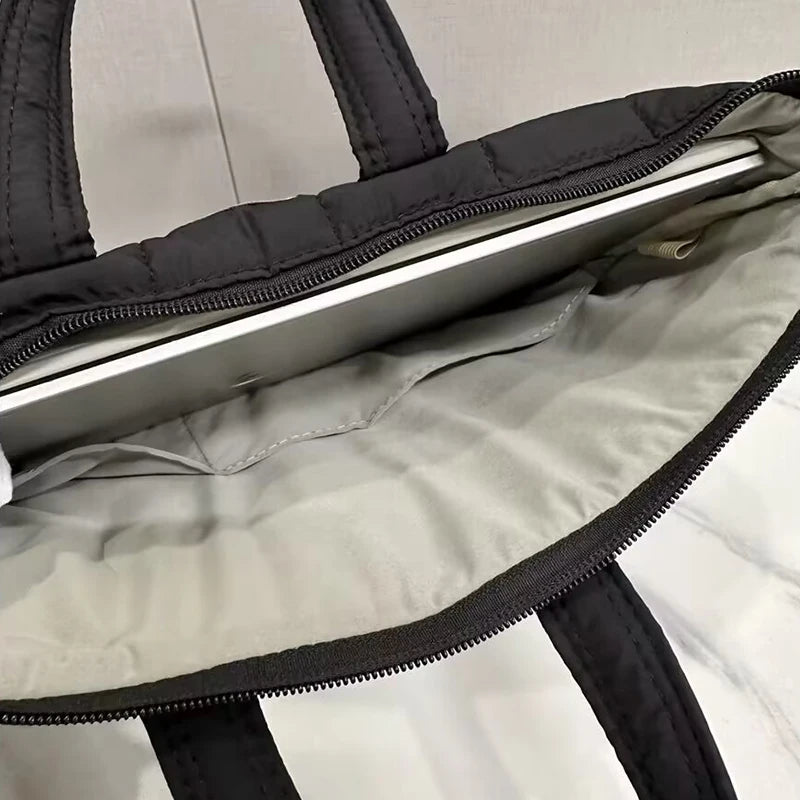 Diese bezaubernde, stoßfeste Laptop-Handtasche bietet ein atmungsaktives, geräumiges Fach für 11- bis 15-Zoll-MacBooks, iPads, Lenovo- und Xiaomi-Geräte. Sie ist für Laptops und Tablets von 9 bis 16 Zoll geeignet und besticht durch ihr weiches, charmantes Steppdesign, das Ihre Geräte sicher schützt. Mit einem zuverlässigen Reißverschluss und leichtem Polyestermaterial ist sie der ideale Begleiter für Arbeit, Reisen oder Schule. Bleiben Sie stilvoll und geschützt, während Sie Ihre wichtigsten Dinge mit Leichtigkeit und Flair transportieren!