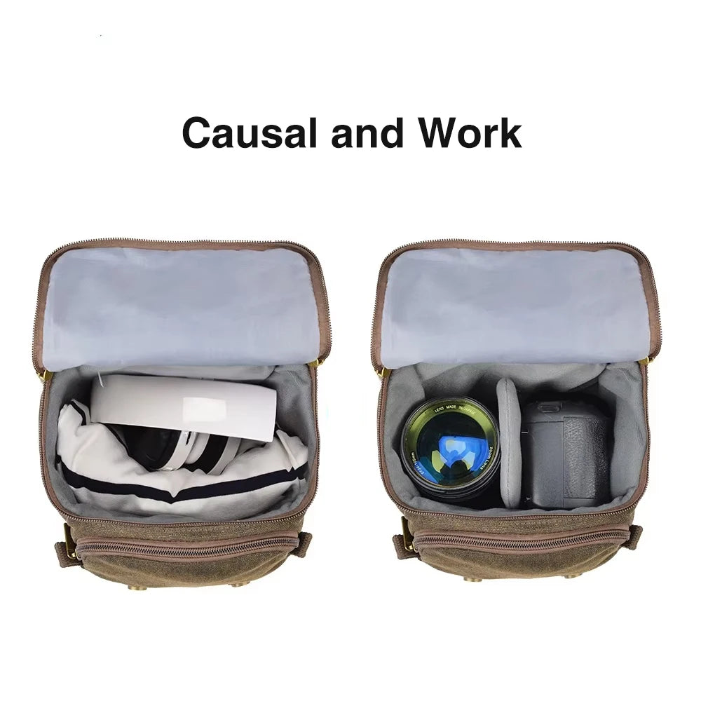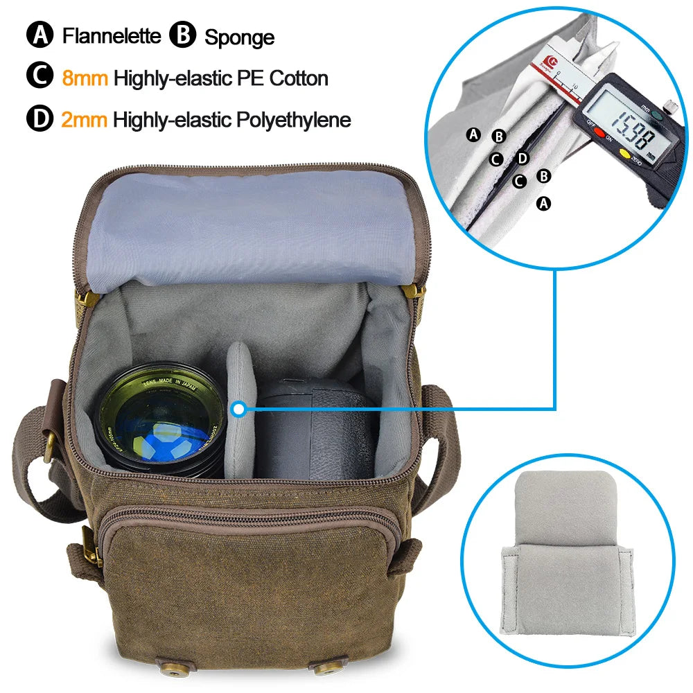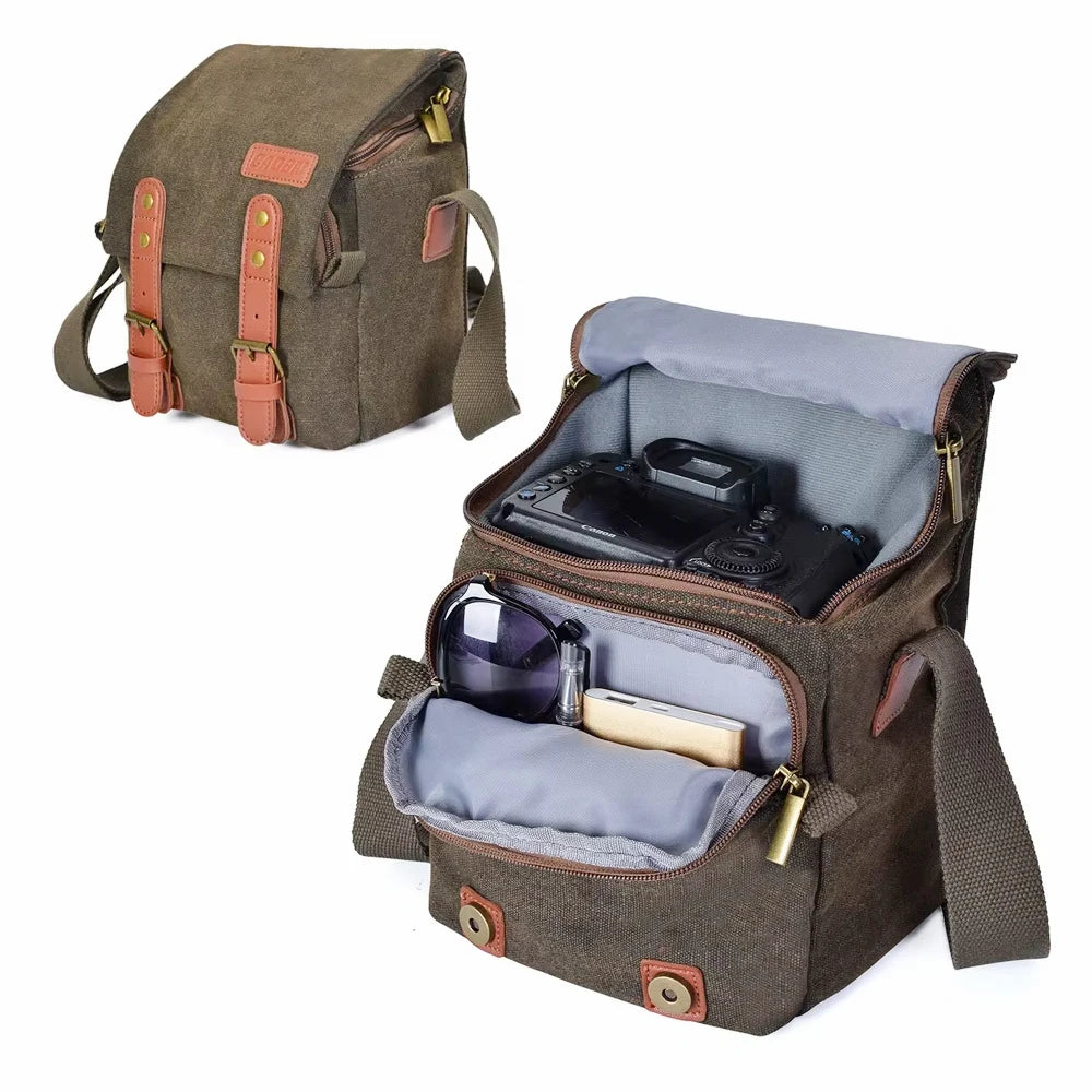 Cwatcun Wasserfeste Canvas-Kamera-Schultertasche – Stoßfeste Tasche für Canon, Nikon, Sony und Objektive