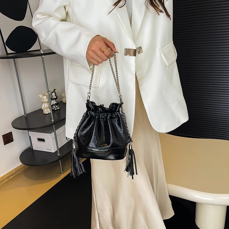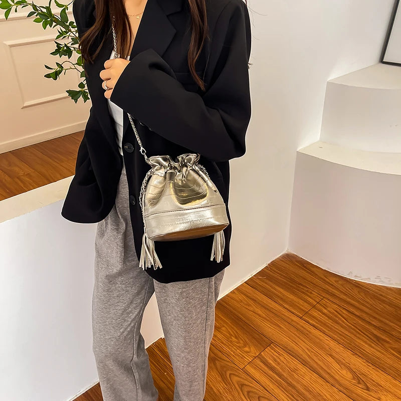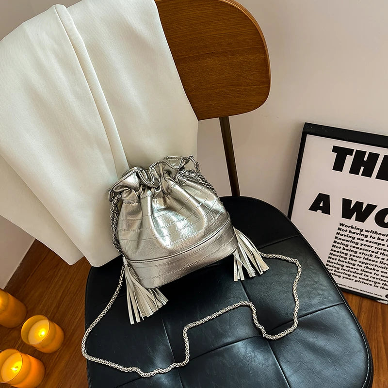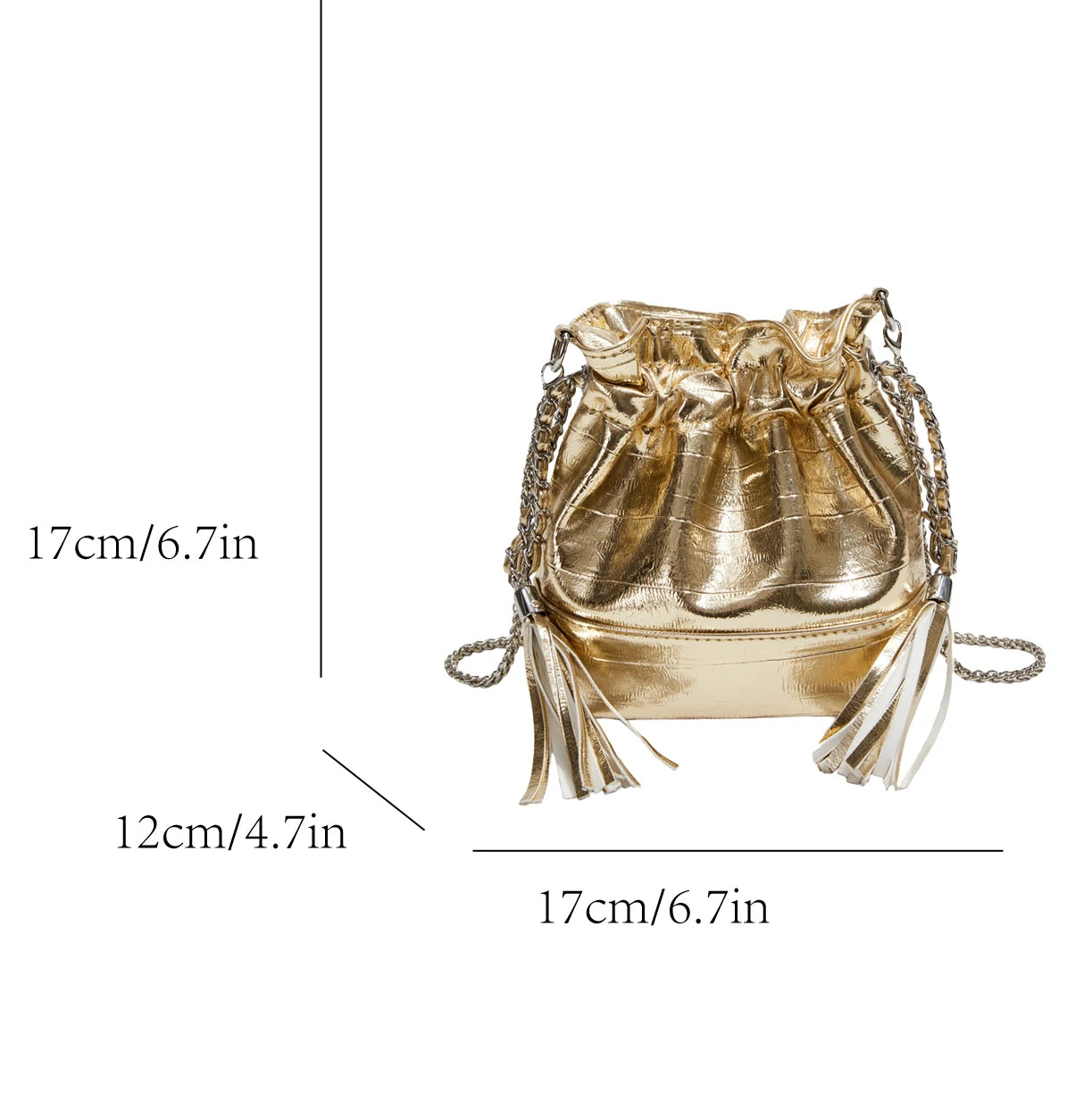 Diese verspielte Umhängetasche mit Quaste ist die perfekte Kombination aus Stil und Funktionalität für Frauen unterwegs. Sie besteht aus weichem TPU in schicker Eimerform und verfügt über ein praktisches Handyfach im Inneren sowie einen sicheren Kordelverschluss. Mit einer Breite von 17 cm, einer Höhe von 17 cm und einer Dicke von 12 cm sowie einem 120 cm langen Riemen ist sie für den vielseitigen Alltagsgebrauch konzipiert. Mit einem verspielten Quastendetail verleiht diese leichte, vom Designer inspirierte Handtasche jedem Outfit das gewisse Etwas.