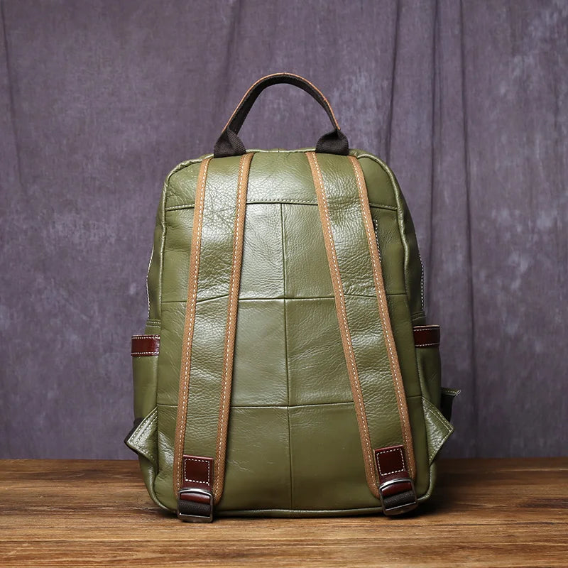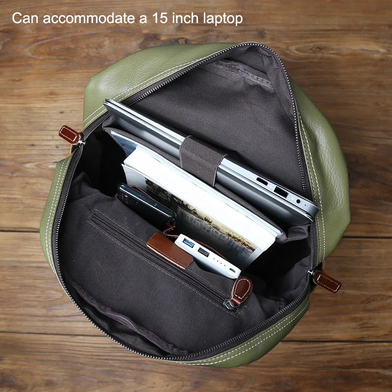 Lernen Sie Ihren neuen Lieblingsbegleiter kennen: den Echtleder-Rucksack aus hochwertigem Rindsleder im lässigen College-Look. Er bietet Platz für Laptops bis zu 15 Zoll und verbindet schlichten Stil mit einer Prise Flair. Mit einem bequemen, geschwungenen Schultergurt, vielen Innen- und Außentaschen und einem leichtgängigen Reißverschluss transportieren Sie alles Wichtige mühelos. Hergestellt aus echtem Rindsleder, mit weichem Griff und robustem Canvas-Futter, bringt diese Unisex-Tasche eine Prise Spaß in Ihren Alltag. Erhältlich in einem frischen Grünton – ohne Regenschutz, nur pures Leder!