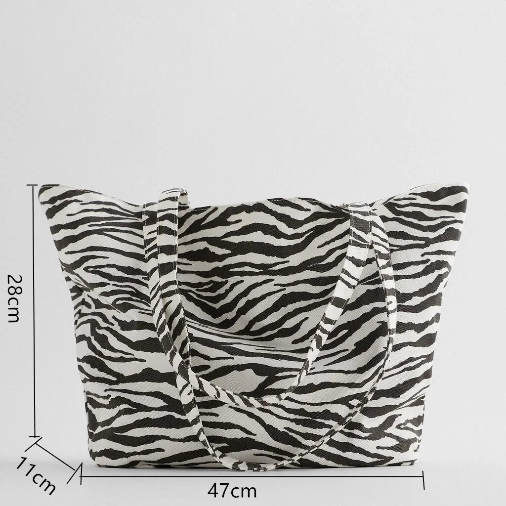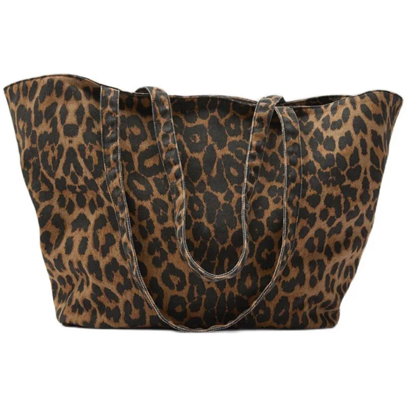 Tragetasche aus Canvas mit Leopardenmuster – Schultertasche mit großem Fassungsvermögen für Damen