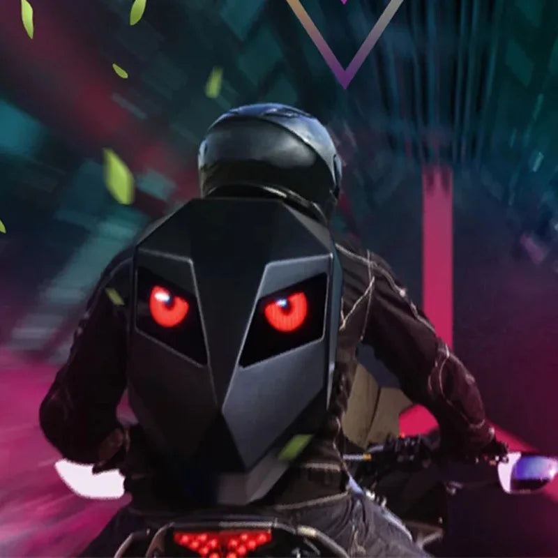 LED Knight Motorradhelm-Rucksack – Bluetooth-wasserdichte Hartschalen-Fahrradtasche mit Augendesign, passend für Laptop, stilvoll und langlebig