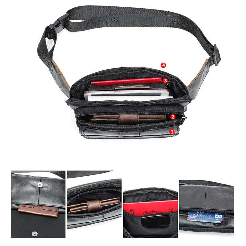 Unisex Luxus-Gürteltasche aus Leder – Sling- und Bauchtasche aus echtem Leder für den täglichen Gebrauch