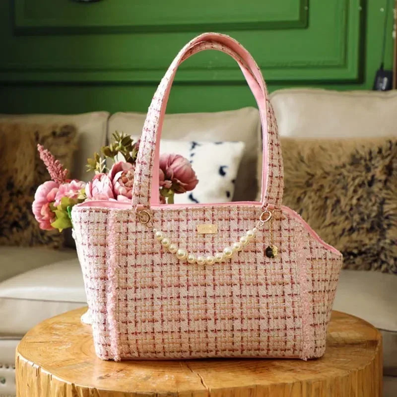 Luxuriöse, karierte Umhängetasche für kleine Hunde – weiche Reisehandtasche für Katzen und Welpen
