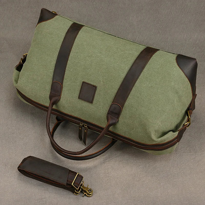 Reisetasche aus Canvas-Leder für Herren – Großes Wochenend-Schultergepäck