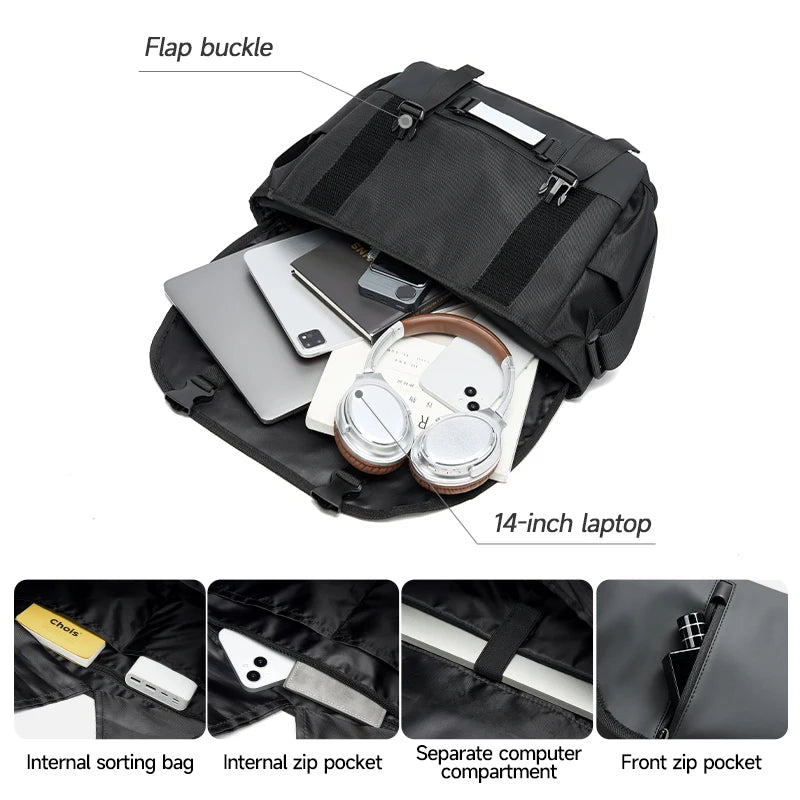 Wasserdichte Messenger Bag für Herren – Multifunktionale Umhängetasche mit großem Fassungsvermögen für Schule, Reisen und den Geschäftsalltag