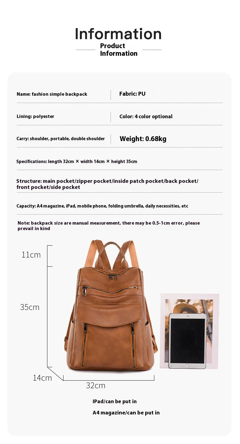 Dieser schicke Rucksack aus PU-Leder ist perfekt für Frauen unterwegs und bietet stilvollen Platz für Ihr iPad und Ihre wichtigsten Utensilien. Mit einem weichen Griff und einem praktischen Innenfach bleiben Ihre Sachen übersichtlich und griffbereit. Leicht und mit weniger als 20 Litern Volumen ist er ein modischer Begleiter aus strapazierfähigem Polyesterfutter und glattem PU-Material. Dieser in China gefertigte Rucksack mit einfarbigem Muster vereint Funktionalität mit trendigem Flair für alltägliche Abenteuer.