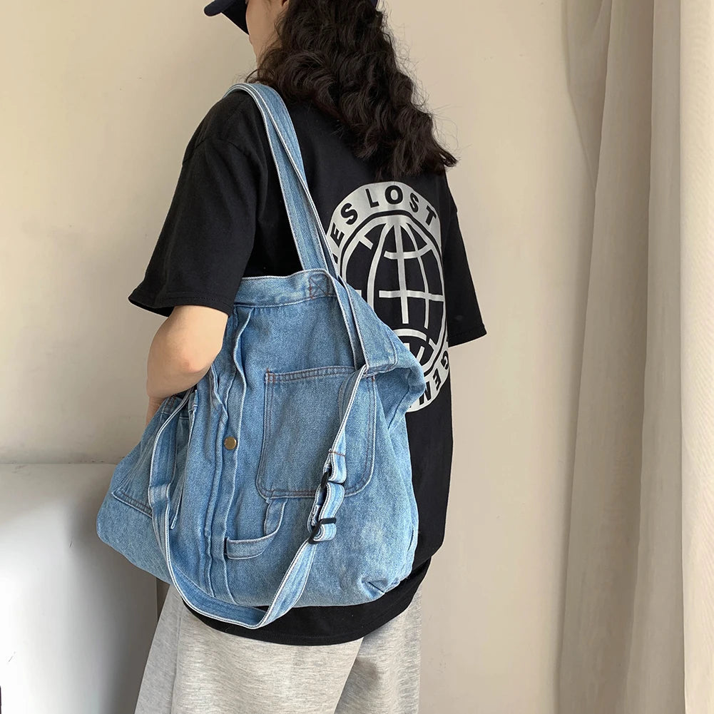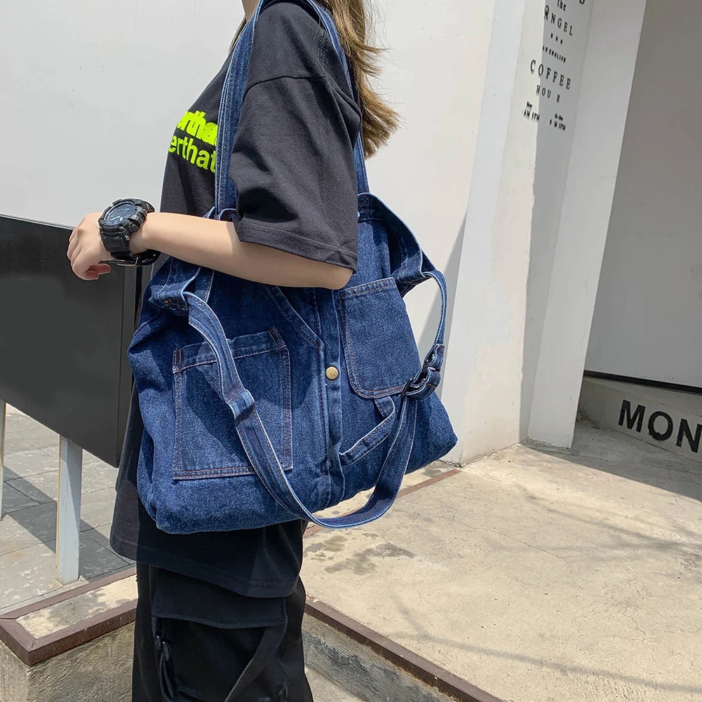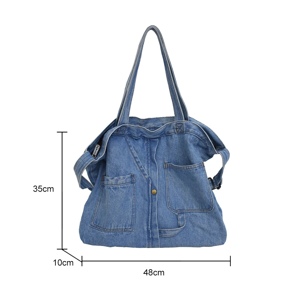Retro-Schulterhandtasche für Damen – Großes Fassungsvermögen, Vintage-Umhängetasche aus Denim für Reisen und den täglichen Gebrauch