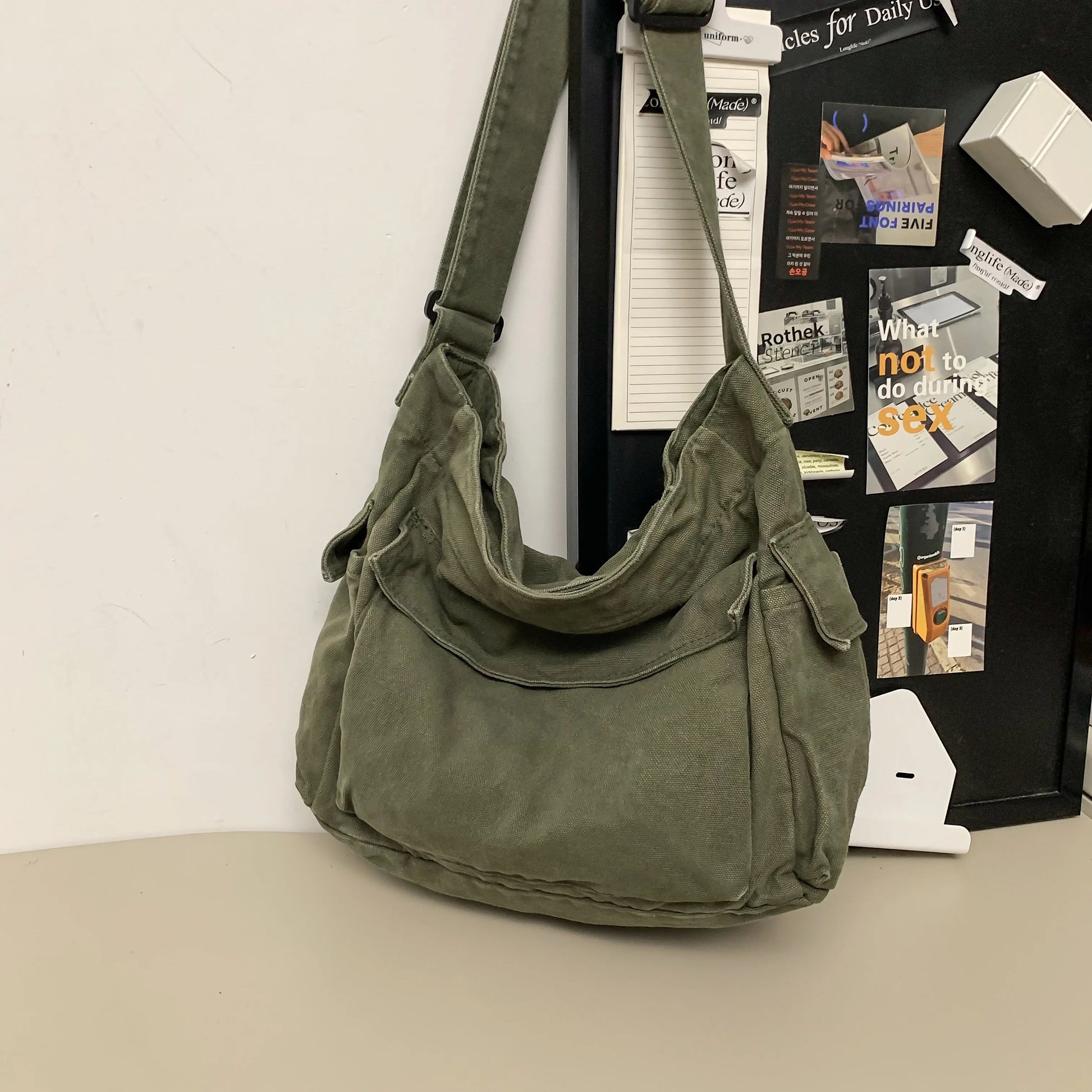 Lernen Sie Ihren neuen Lieblingsbegleiter kennen: eine Umhängetasche aus 100 % Baumwoll-Canvas im charmanten koreanischen Vintage-Look! Diese weiche, geräumige Tasche ist perfekt für jede Jahreszeit und jedes Abenteuer. Sie verfügt über einen praktischen Reißverschluss und einen verstellbaren Riemen für bequemes Tragen. Mit ihrer einfarbigen Optik und dem vielseitigen Stil ist sie bereit, Ihre wichtigsten Dinge sicher und stilvoll zu verstauen, egal wo Sie unterwegs sind. Leicht und dennoch geräumig, verbindet diese verspielte Tasche klassischen Charme mit Alltagstauglichkeit.