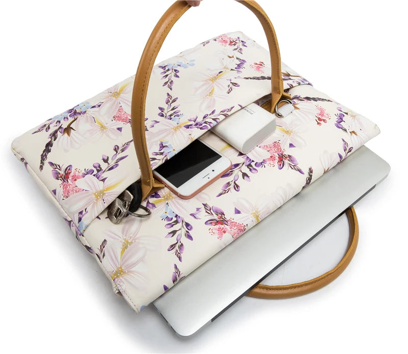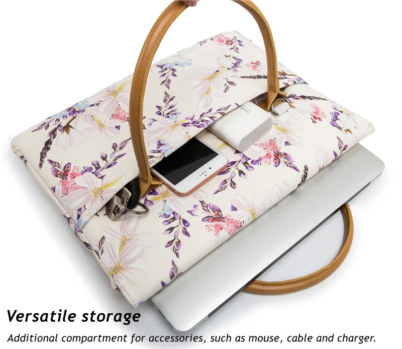 Lernen Sie die wasserdichte Kinmac Laptoptasche für Damen kennen – eine schicke Umhängetasche, perfekt für MacBook Air, Pro und andere Notebooks von 13,3 bis 15,6 Zoll. Diese Unisex-Tasche aus PU-Material mit sicherem Reißverschluss vereint lässigen Style mit praktischem, wasserdichtem Schutz. Sie wurde in Festlandchina entworfen, besticht durch ein trendiges Blumenmuster und ist sofort einsatzbereit. Schützen Sie Ihre Technik und sehen Sie mühelos cool aus!