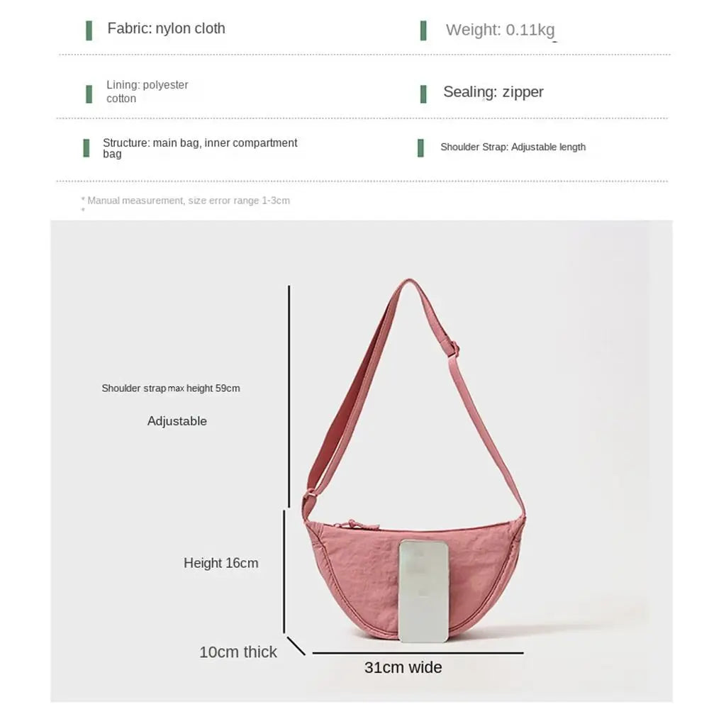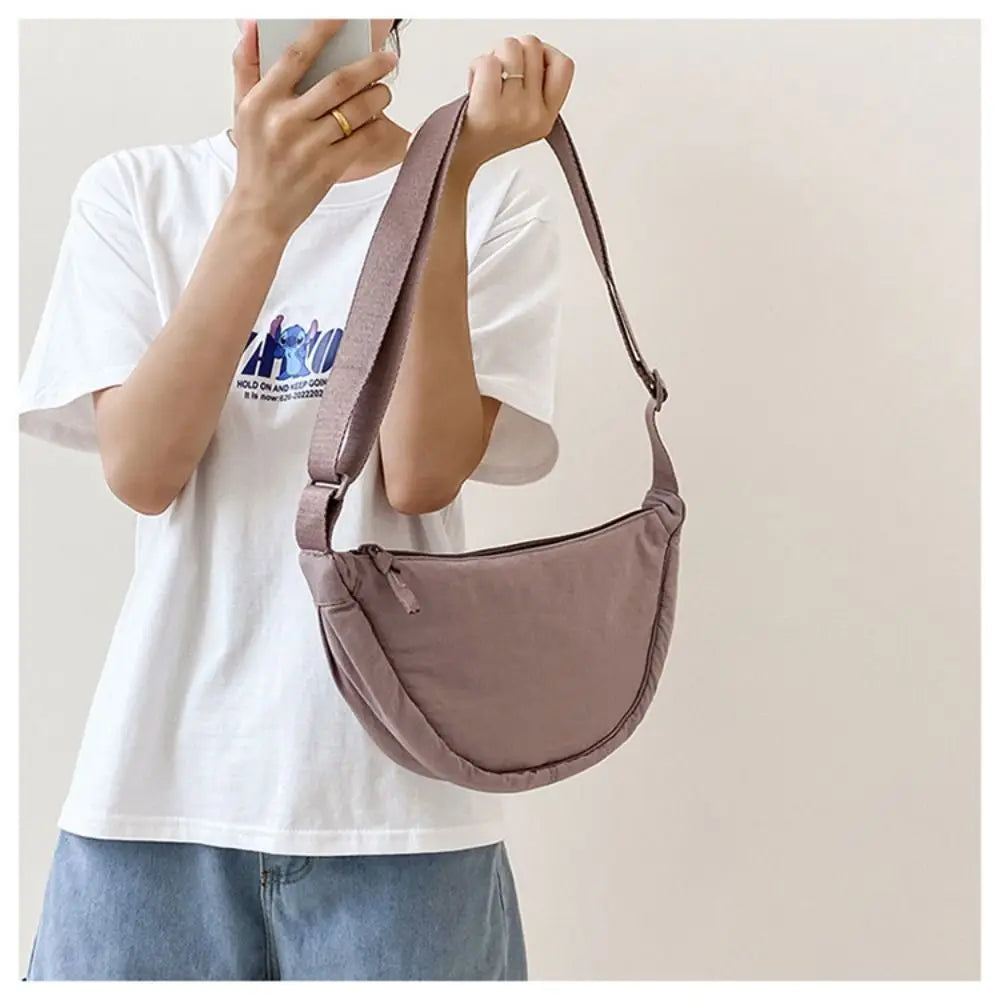 Damen-Umhängetasche aus Nylon – Stilvolle, einfarbige Umhänge- und Unterarmtasche für lässige und sportliche Looks