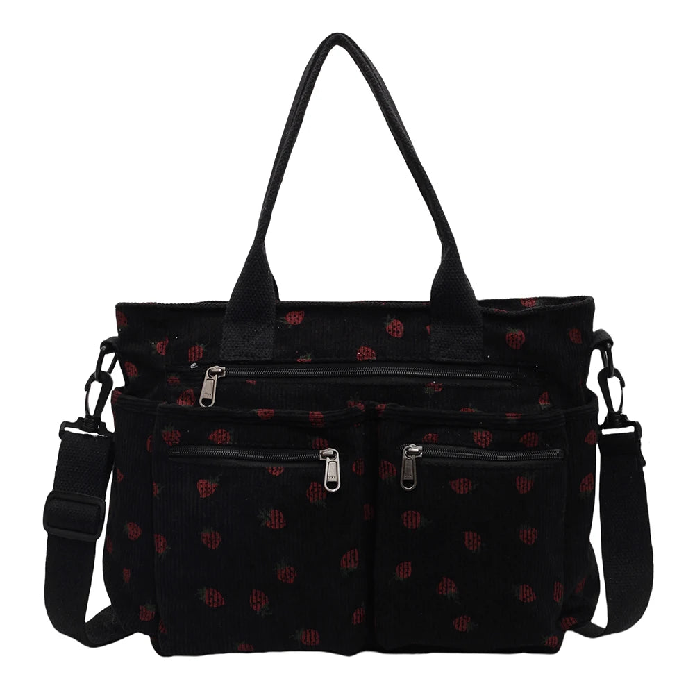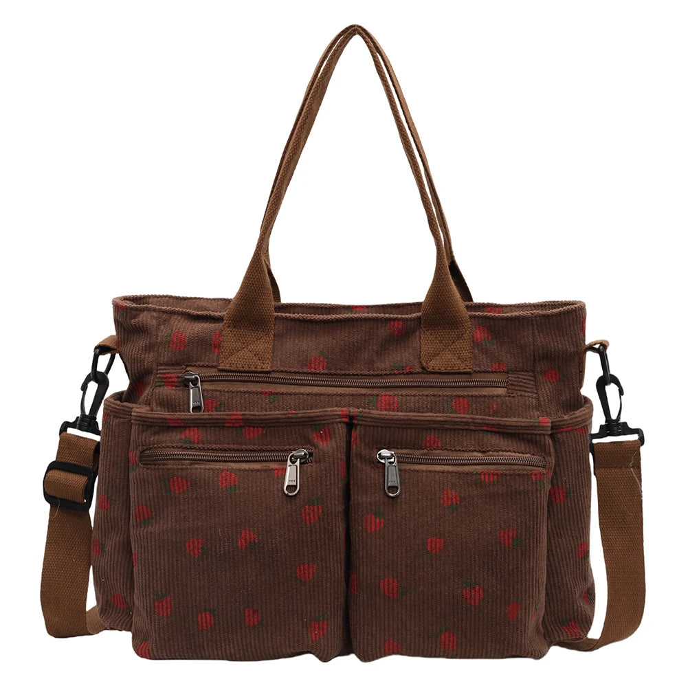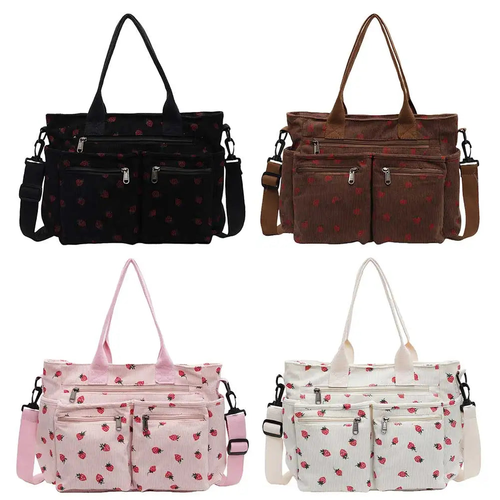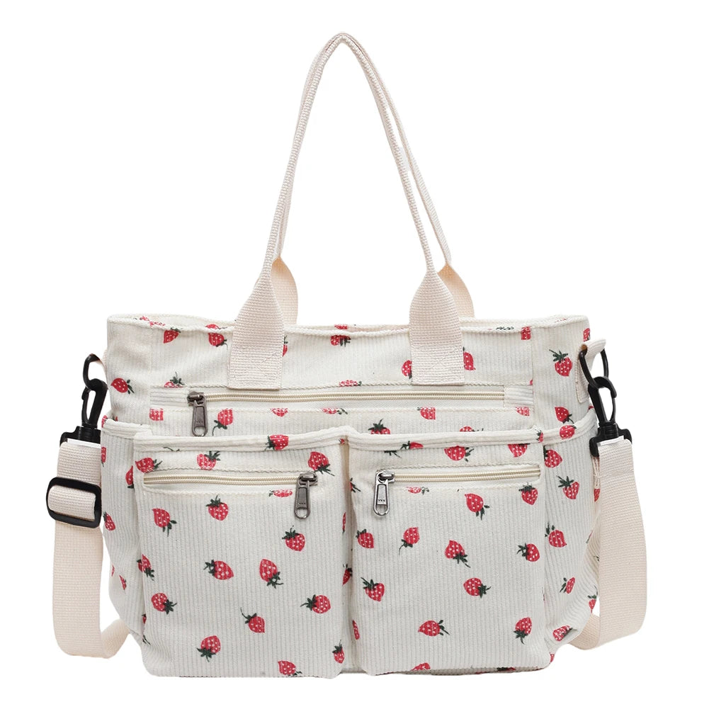 Cord-Lehrertasche für Damen – süßer Erdbeerdruck, große Kapazität, Schulter- und Umhängetasche für den Unterricht und Pendler, Tragetasche und Umhängetasche für die Arbeit und den täglichen Gebrauch, Messenger-Geldbörse