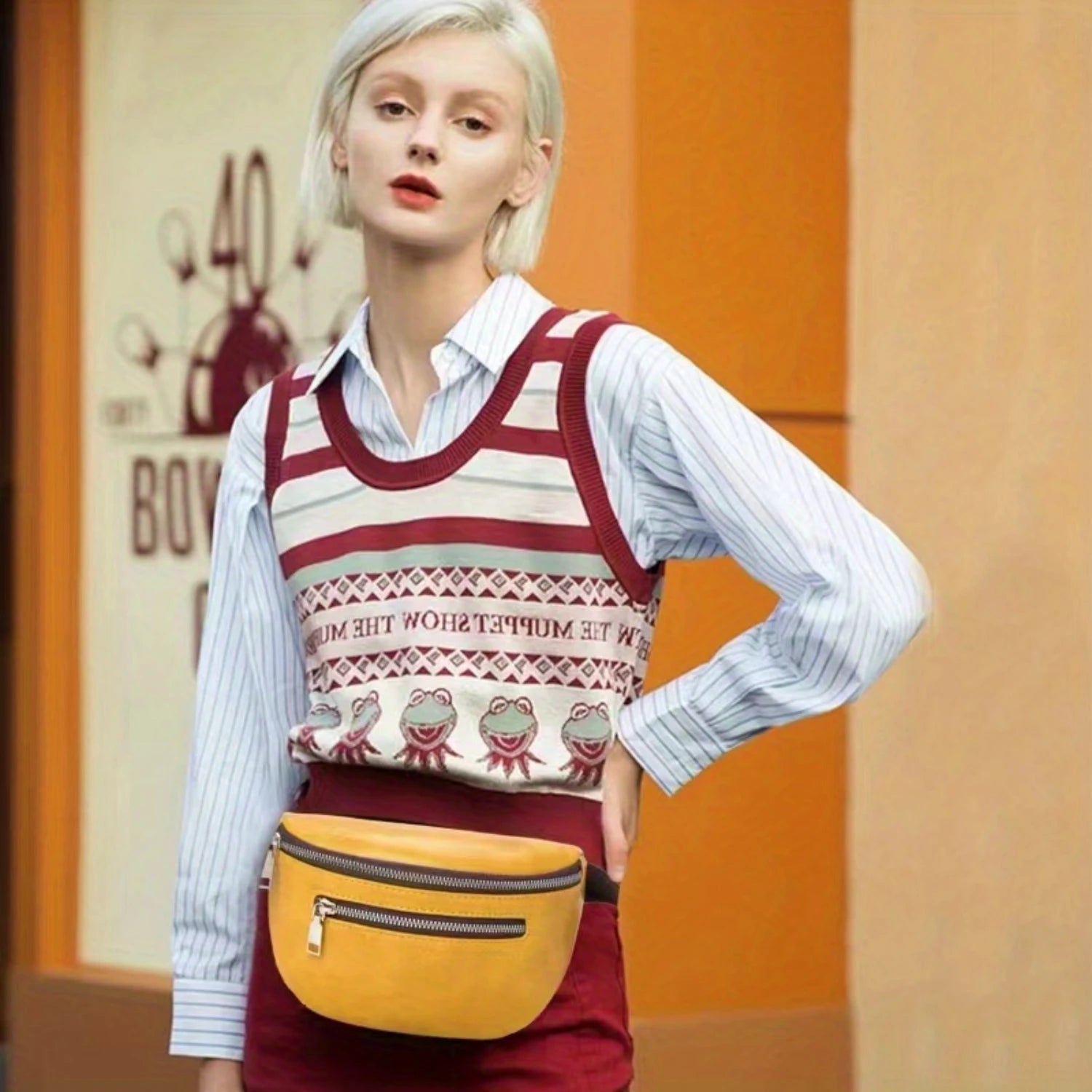Mit unserer Leder-Bauchtasche für Damen bleiben Sie mühelos schick und haben die Hände frei – perfekt für stilbewusste Draufgängerinnen. Diese verspielte Gürteltasche verfügt über einen verstellbaren Riemen für perfekten Sitz und mehrere Taschen, in denen Sie Ihre wichtigsten Dinge immer griffbereit haben. Hergestellt aus strapazierfähigem Leder mit Vintage-Touch ist sie Ihr Lieblingsaccessoire für Besorgungen, Reisen oder einen Abend in der Stadt. Verleihen Sie Ihrem Look einen Hauch von Retro-Flair und bleiben Sie überall frisch und lässig!