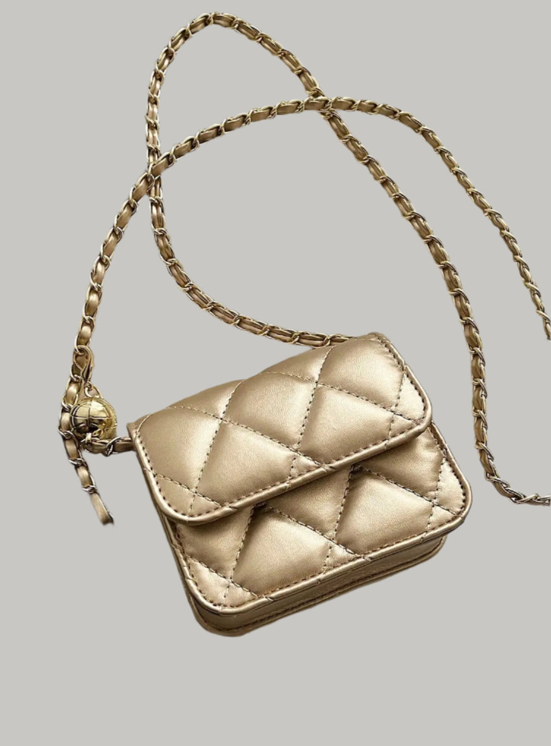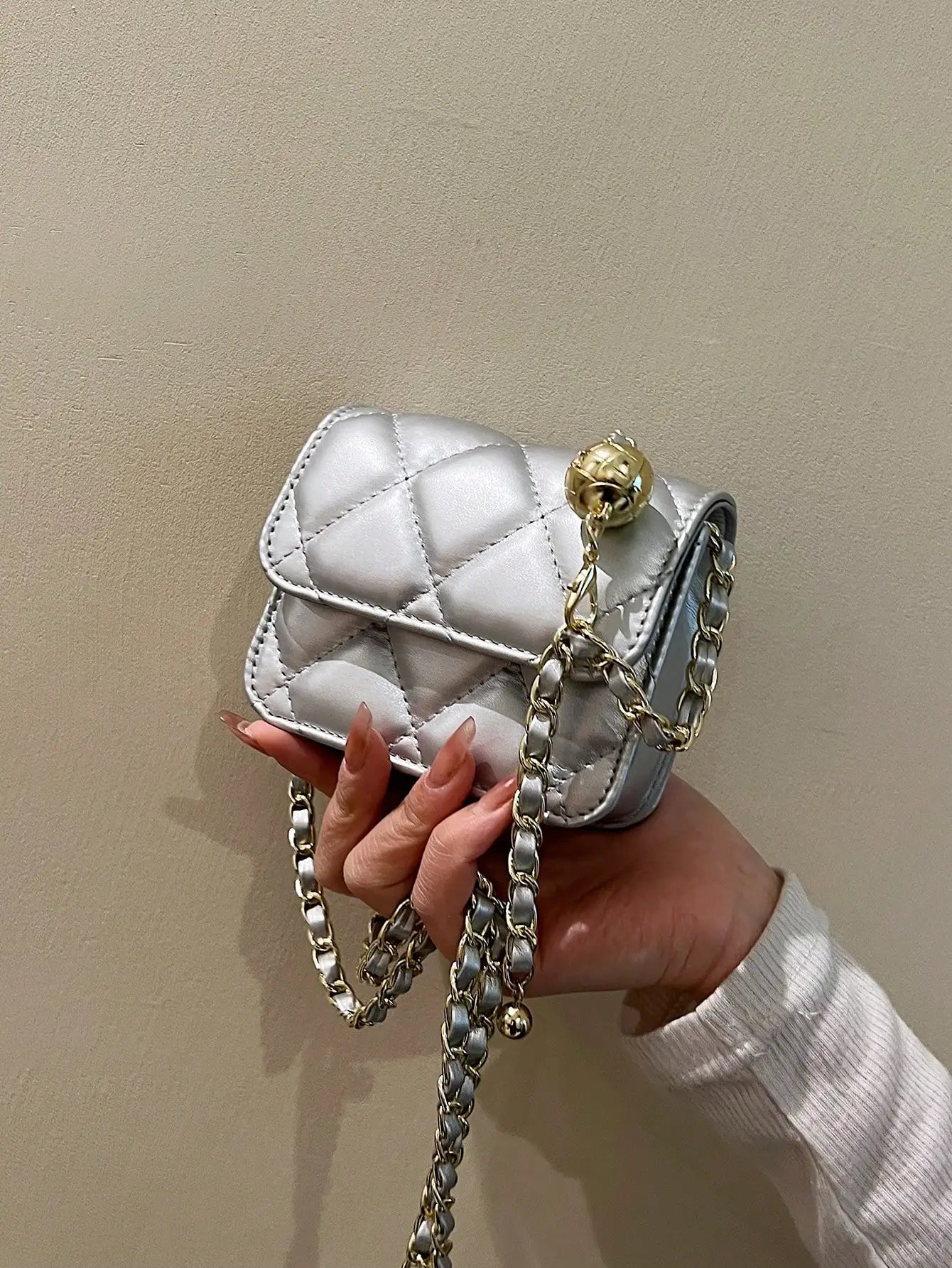 Diese charmante Mini-Umhängetasche für Damen besticht durch einen verspielten goldenen Kugelkettenriemen und eine vielseitige Rautengitterstruktur aus glattem PU-Leder. Mit ihrer moderaten Festigkeit und dem sicheren Hasenverschluss verleiht sie jedem Outfit eine pfiffige Note. Leicht und kompakt – diese modische Umhängetasche von Guangdong ist Ihr Begleiter für mühelosen Style unterwegs.