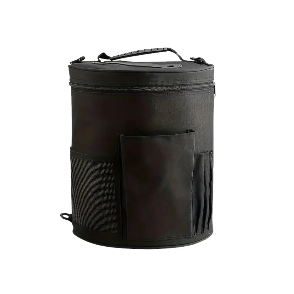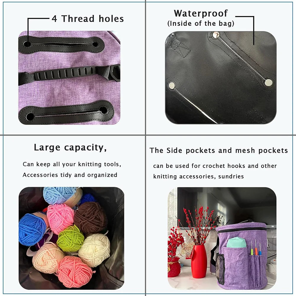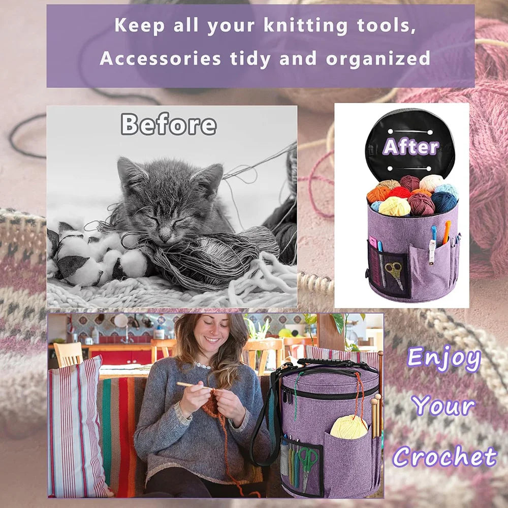 Tame your yarn chaos! 🧶 Spacious crochet bag with lid, pockets & yarn holes—stylish, portable & perfect for knitters on the go.