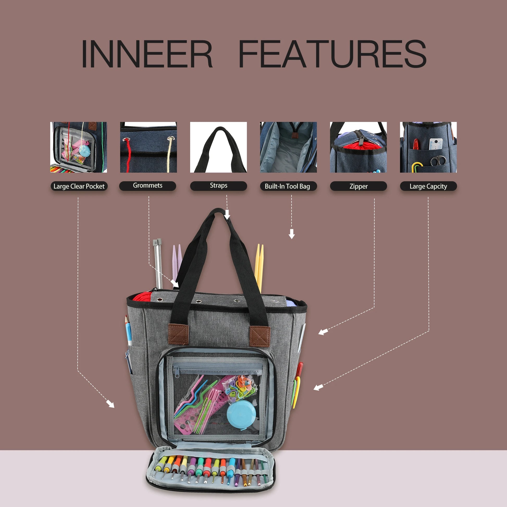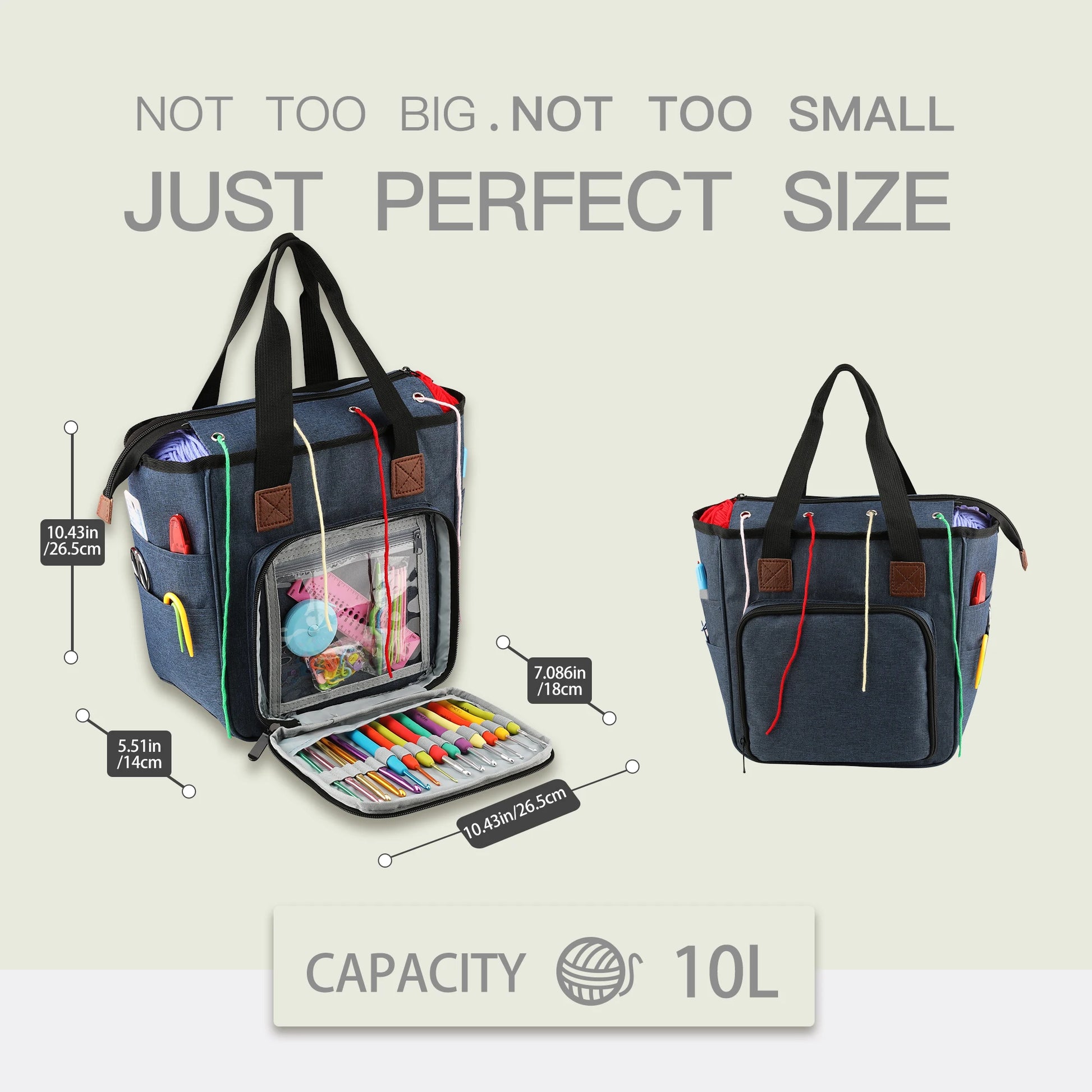KOKNIT Knitting Tote Bag – Yarn Storage Organizer for Crochet Hooks, Knitting Needles & DIY Sewing Accessories