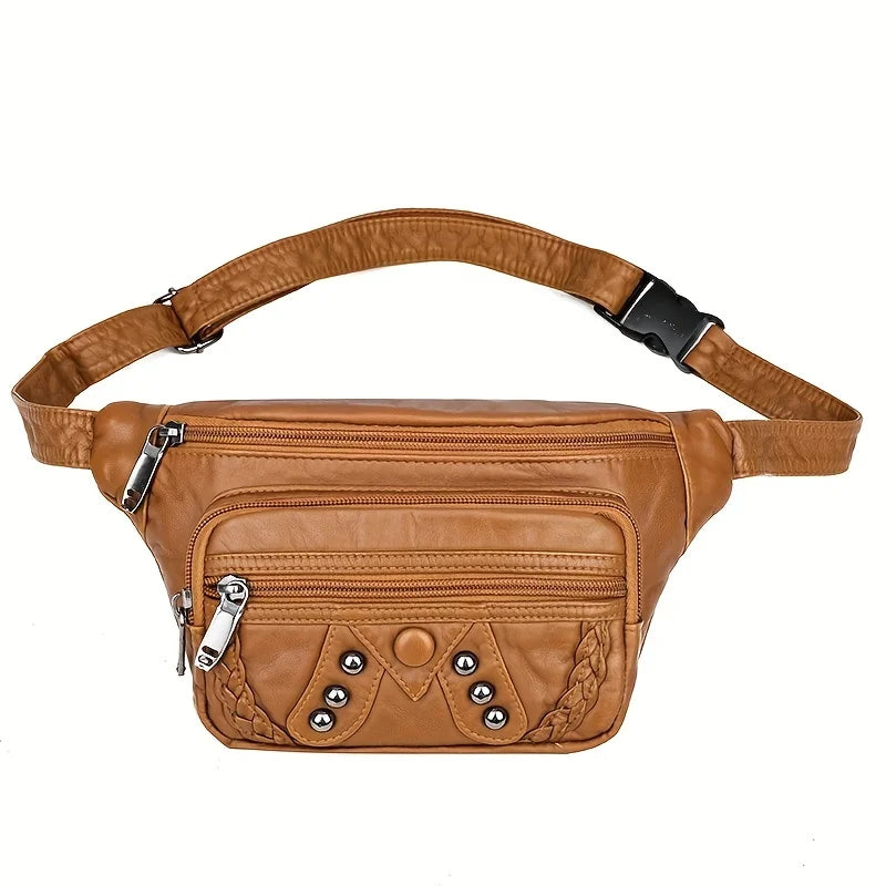 Women’s Vintage Studded Faux Leather Fanny Pack – Stylish Outdoor Travel Waist Bag